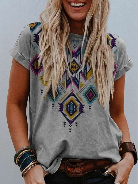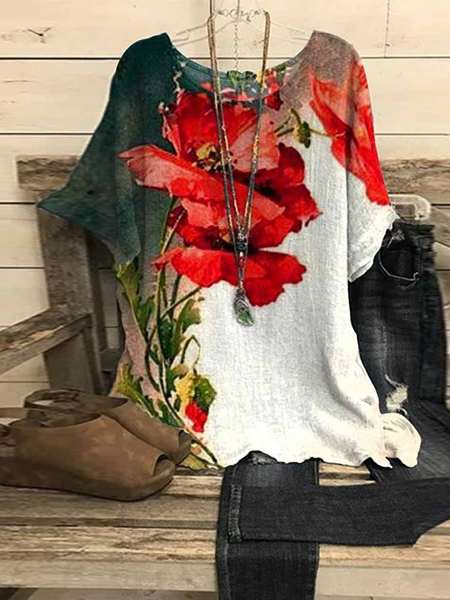 Women's Printed Loose Pullover Short-sleeved T-Shirt