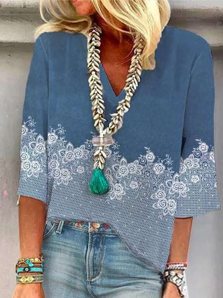 Full Of Fashion Printing U-Neck Pullover T-Shirts