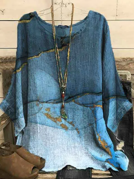 Eye-catching Casual Marbling Loosen Color Matching T-Shirts