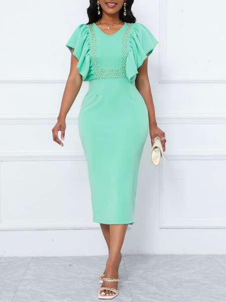 Women's Fashionable Ruffle Sleeve Elegant Dress