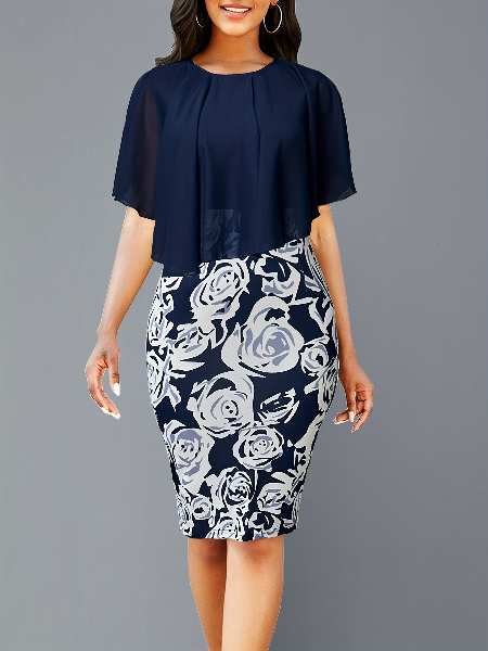 Floral Print V-Neck Short Sleeve Bandage Dress