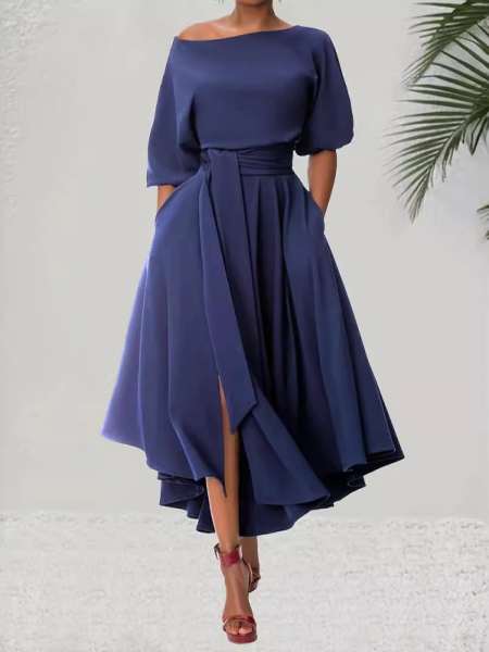 Women's Round Neck Slim Dress Fashion High Waist Dress