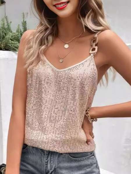 Tank Top Sling Sleeveless Loose Fit Thin Shining Sequins Vest
