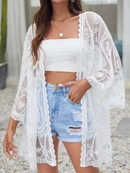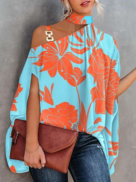 Cold Shoulder Loose Lace Edge Urban Chain Shirt