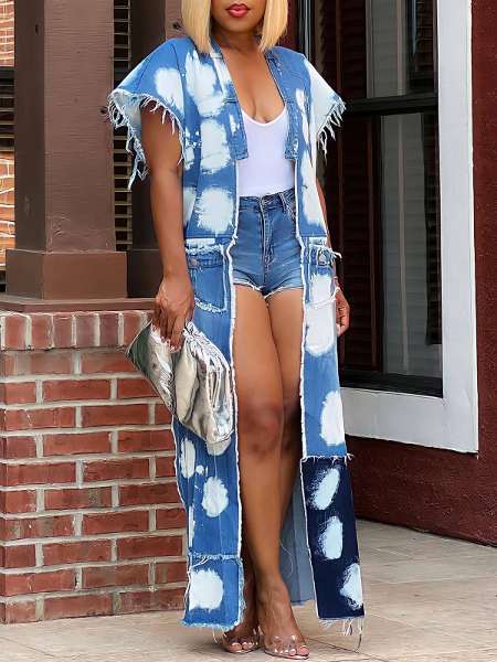 Spliced Vintage Maxi Denim Short Sleeve Jacket