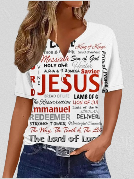 V-neck Jesus Printed Casual Short-sleeved Faith T-Shirt